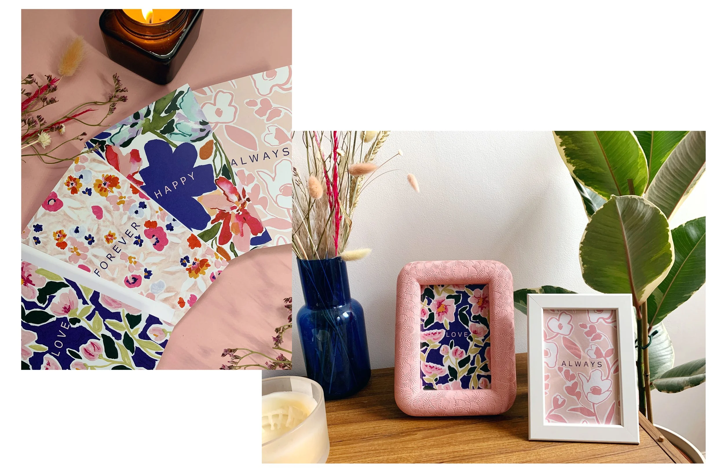 The sentimental element of receiving cards was also an important part of developing this collection. I have always been such a hoarder when it comes to cards I have received, I hate throwing them away and I just have boxes full of them from over the years. I wanted to create cards that could be re-used once they were received and be kept and framed as mini pieces of art or motivational prints. This reduces waste as most cards are single use, but also makes them even more special as they can be a reminder of the loved one who sent you the card whenever you see it framed in your home.